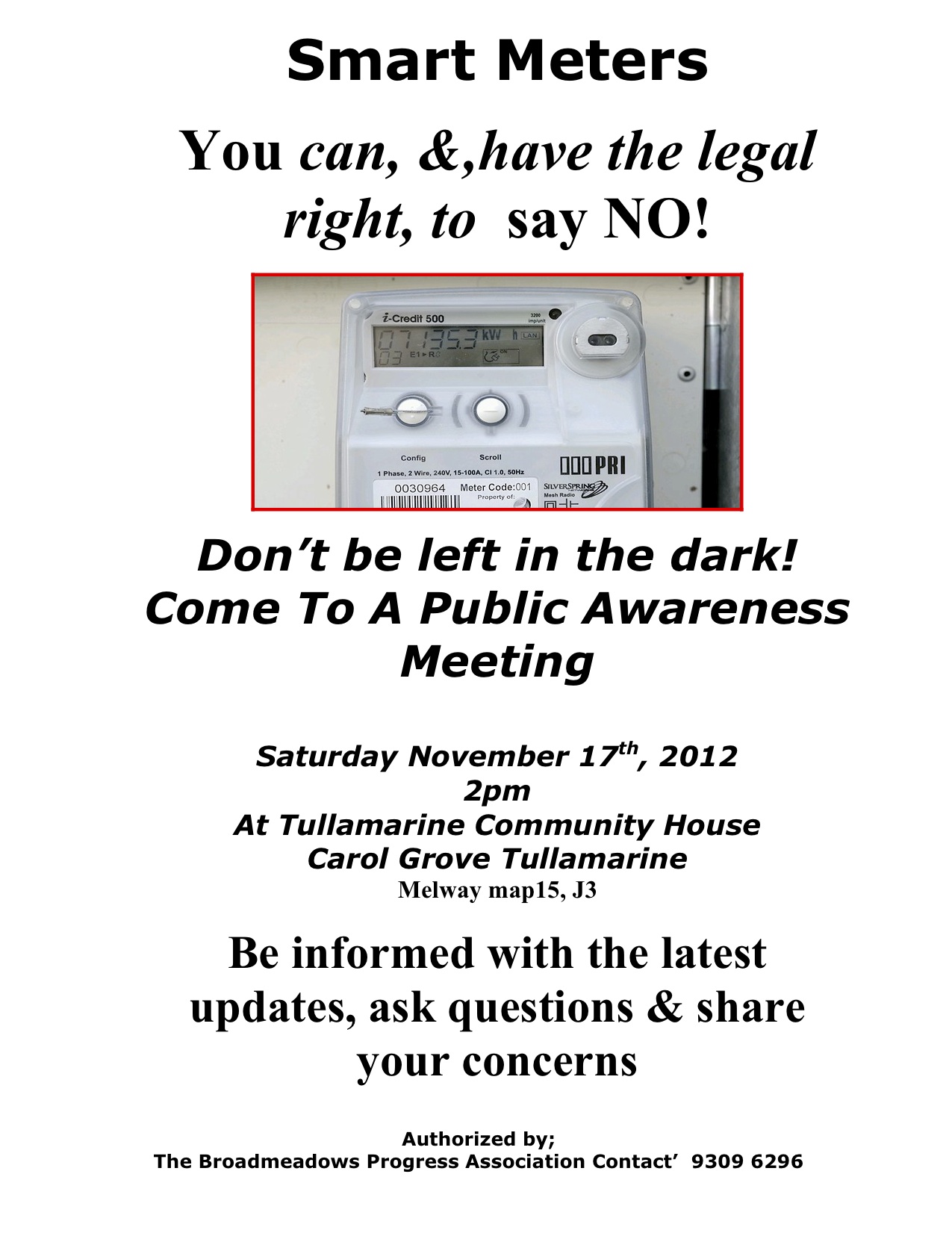 Our meter box is locked and has a sign on it but a contractor for SP AusNet tried to unscrew and then jemmy open our meter box this morning with a screw driver. Is this normal / to be expected? Are they likely to return? They left when I went out and very firmly told them that we do not consent to having a “smart” meter installed and informed him that they did not have legal right to force us to install one. He made some comment about recording us as non-complying customers and then made a sarcastic comment about us being fine though “because we’ve sought legal advice”. He insisted that the law was on his side and nearly laughed at us when we threatened to call the police to have him removed from the property for trespass, damaging our property and installing something without our consent. Has this happened to others? Is there anything we should do now? Now worried about leaving the house in case they force the lock or unscrew the hinges and install it while I am out. What happened today is obviously NOT consistent with the comment by Lyall JOhnson (spokesman for SP AusNet) that are “not forcibly installing smart meters where householders had blocked access”. Our meter is mounted on asbestos and removing it and installing another would expose the installer and our family to asbestos. Has anyone else experienced this?