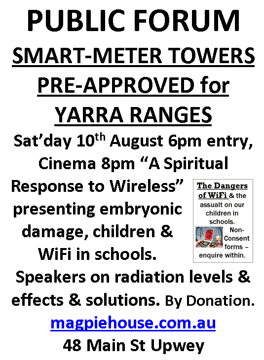 Wireless RF is used by Smart Meters to communicate power usage data back to the Power Utilities. When the smart meter HAN radio is turned on so that smart appliances can integrate with the meter as well as allowing consumers to connect wirelessly with hand held devices to view their power usage, we are likely to see more people experiencing EHS symptoms. It is time for our negligent Government and Power Utilities to investigate claims made by people in Victoria that smart meter RF is impairing people’s health otherwise they can expect to look forward to similar legal actions in Victoria in the near future.